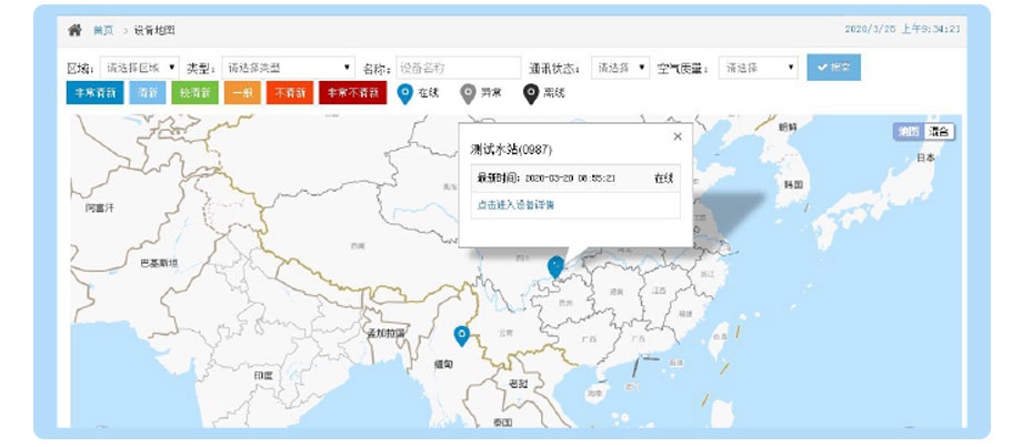 設(shè)備地圖:各個監(jiān)測數(shù)據(jù)和儀器信息通過地圖實(shí)時;