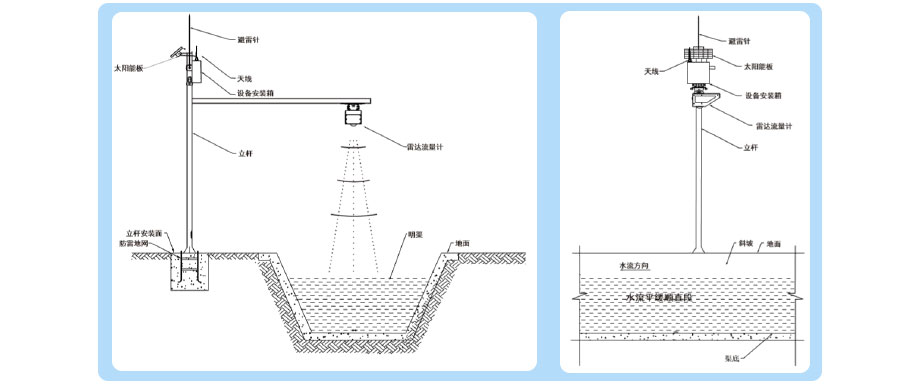 安裝時需將雷達(dá)流量計垂直固定在支架上,保證流量計安裝高度在測量量程(0.2~7m)內(nèi);且需盡量保證發(fā)射的雷達(dá)波全部照射到水面,以保證測量精度。