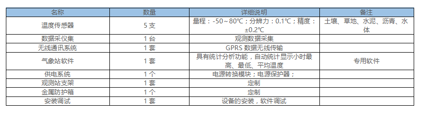 地面溫度系統(tǒng)是在線監(jiān)測多種地面溫度,其中包含以下幾種地表溫度:土壤、草地、水泥、瀝青、水體。
