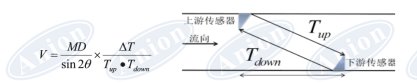 超聲波流量計(jì)通過(guò)上、下游傳感器相互發(fā)送及接收1Mhz超聲波,當(dāng)超聲波束在液體中傳播時(shí),液體的流動(dòng)將使傳播時(shí)間發(fā)生微小變化,并且其傳播時(shí)間的變化正比于液體的流速。