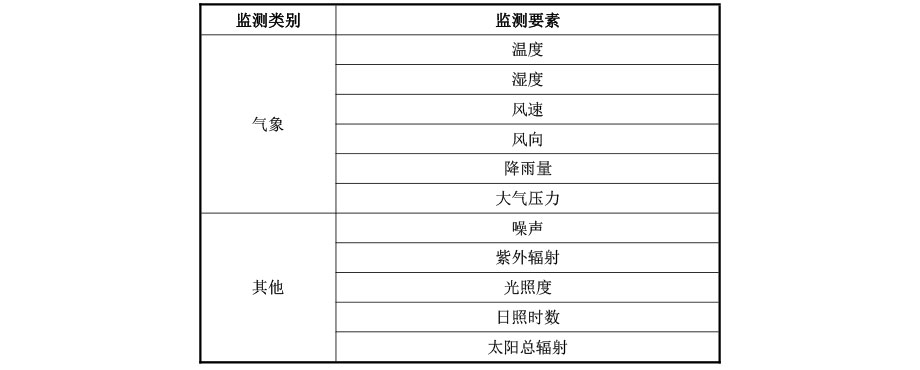 系統(tǒng)將建設(shè)在線氣象環(huán)境監(jiān)測系統(tǒng),在線氣象環(huán)境監(jiān)測系統(tǒng)收集處理與應(yīng)用分析平臺以及配套的網(wǎng)絡(luò)體系和軟硬件設(shè)施。具體設(shè)備類型和設(shè)備數(shù)量根據(jù)實際情況和業(yè)務(wù)需求可靈活配置,監(jiān)測項目如下表所示。