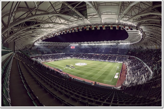 科尼亞城市體育館實(shí)景圖 科尼亞城市體育館坐落在科尼亞城市北部,距離市中心9公里,占地面積約450000平米,包含一個(gè)足球運(yùn)動(dòng)場(chǎng)、一個(gè)游泳館、一個(gè)自行車賽車場(chǎng)和一個(gè)廣場(chǎng)。該體育館是科尼亞城市文化符號(hào)與現(xiàn)代建筑相互碰撞的產(chǎn)物,建筑的外立面白綠相間的顏色正是代表了這個(gè)城市的足球隊(duì)。 建筑的平面布置是根據(jù)歐足聯(lián)的標(biāo)準(zhǔn)設(shè)計(jì)的。場(chǎng)館分上下兩層看臺(tái),總共可容納4.2萬人?磁_(tái)是環(huán)形的,在東南西北四個(gè)方向均設(shè)有座位區(qū)。在觀眾就坐的看臺(tái)下面有設(shè)置多個(gè)廁所和零售區(qū),足夠?yàn)閳?chǎng)館內(nèi)的所有人提供服務(wù)。